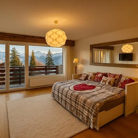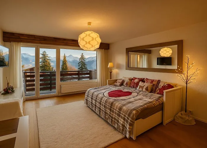 O Studio Cosy Au Calme Avec Terrasse Vue Sur Alpes Crans-Montana de 35 m² inclui terraço e está localizado a caminhada de 7 minutos de Art'Collections Museum. Para os hóspedes que procuram uma estadia ativa, este apartamento concede acesso para um clube de golfe.